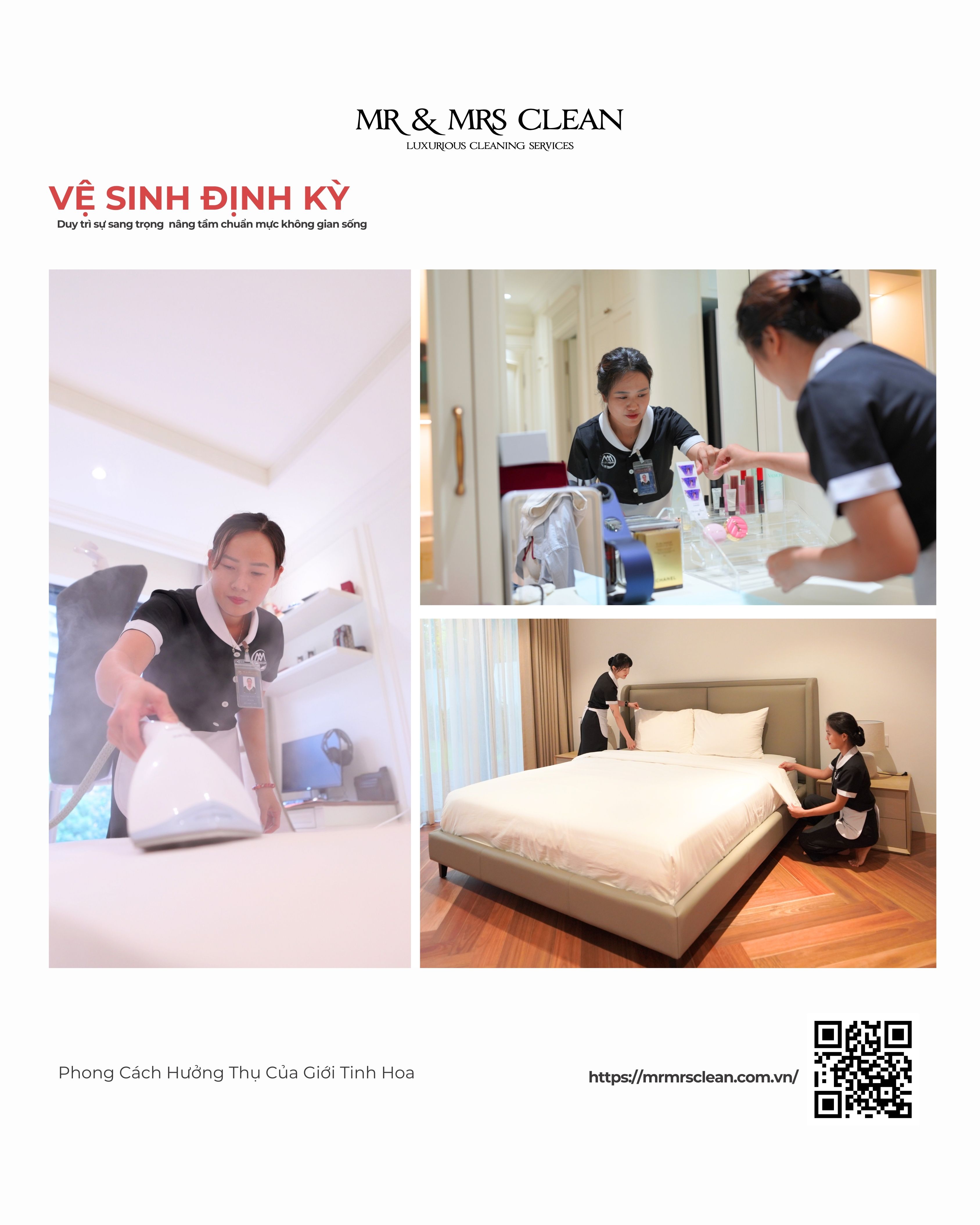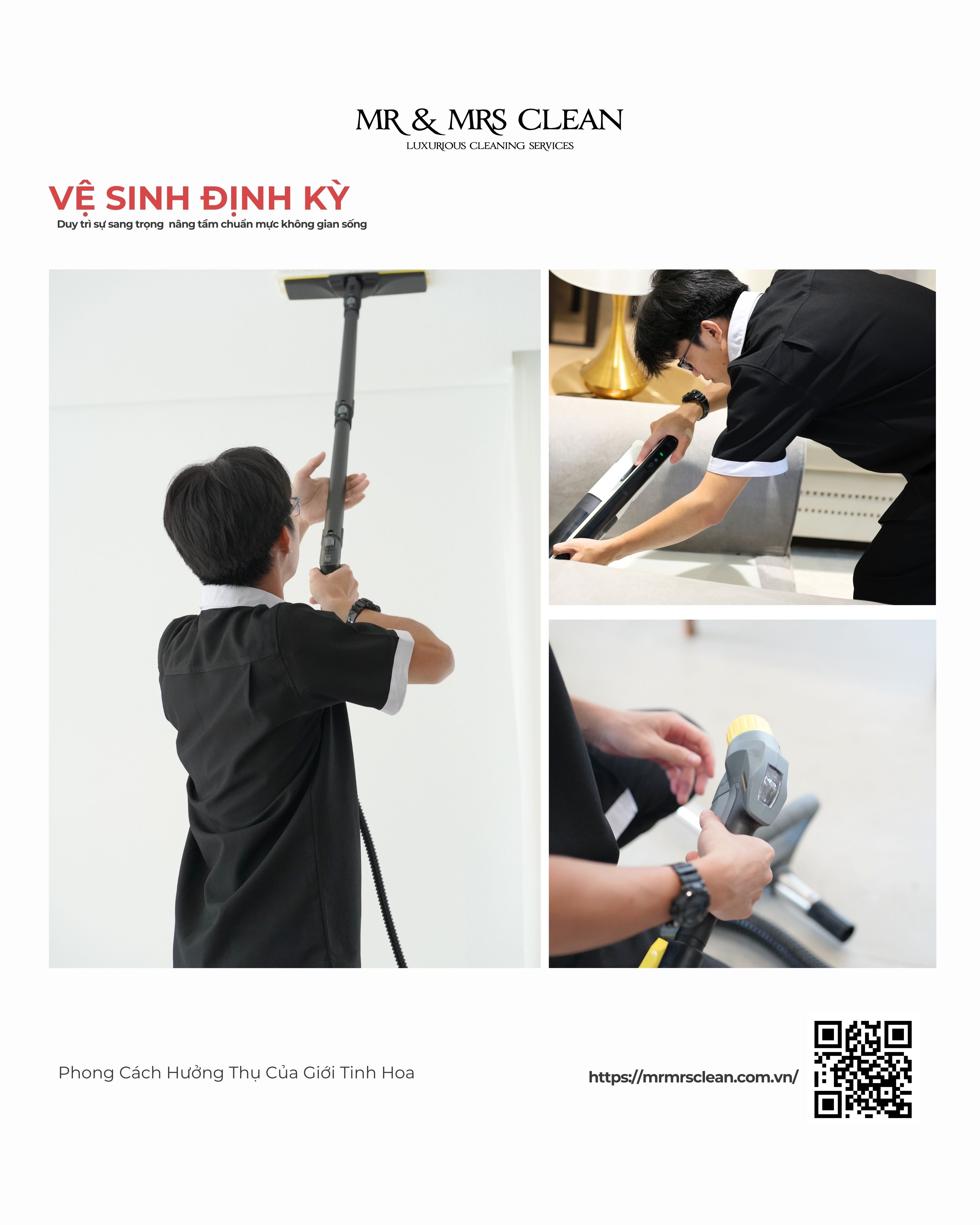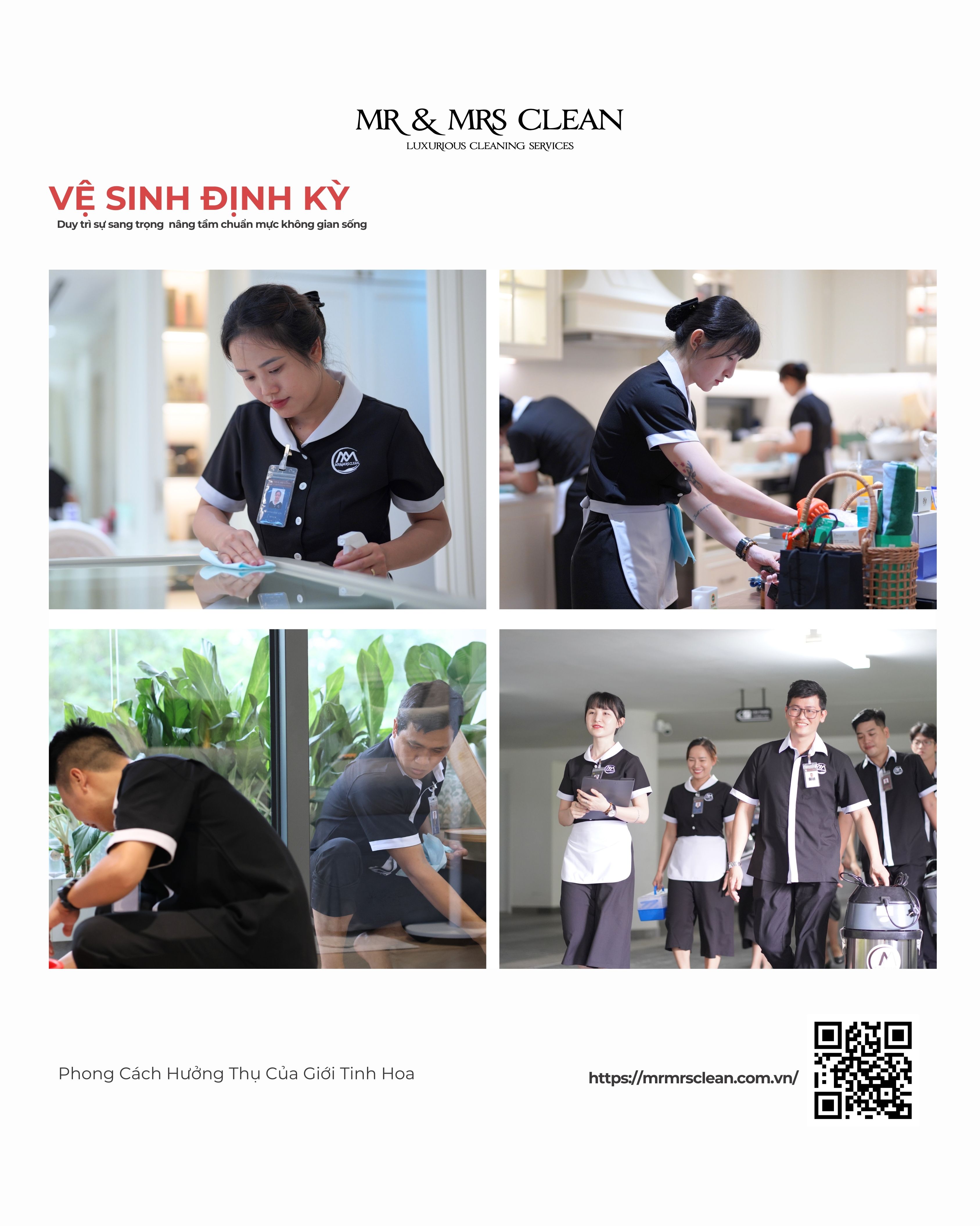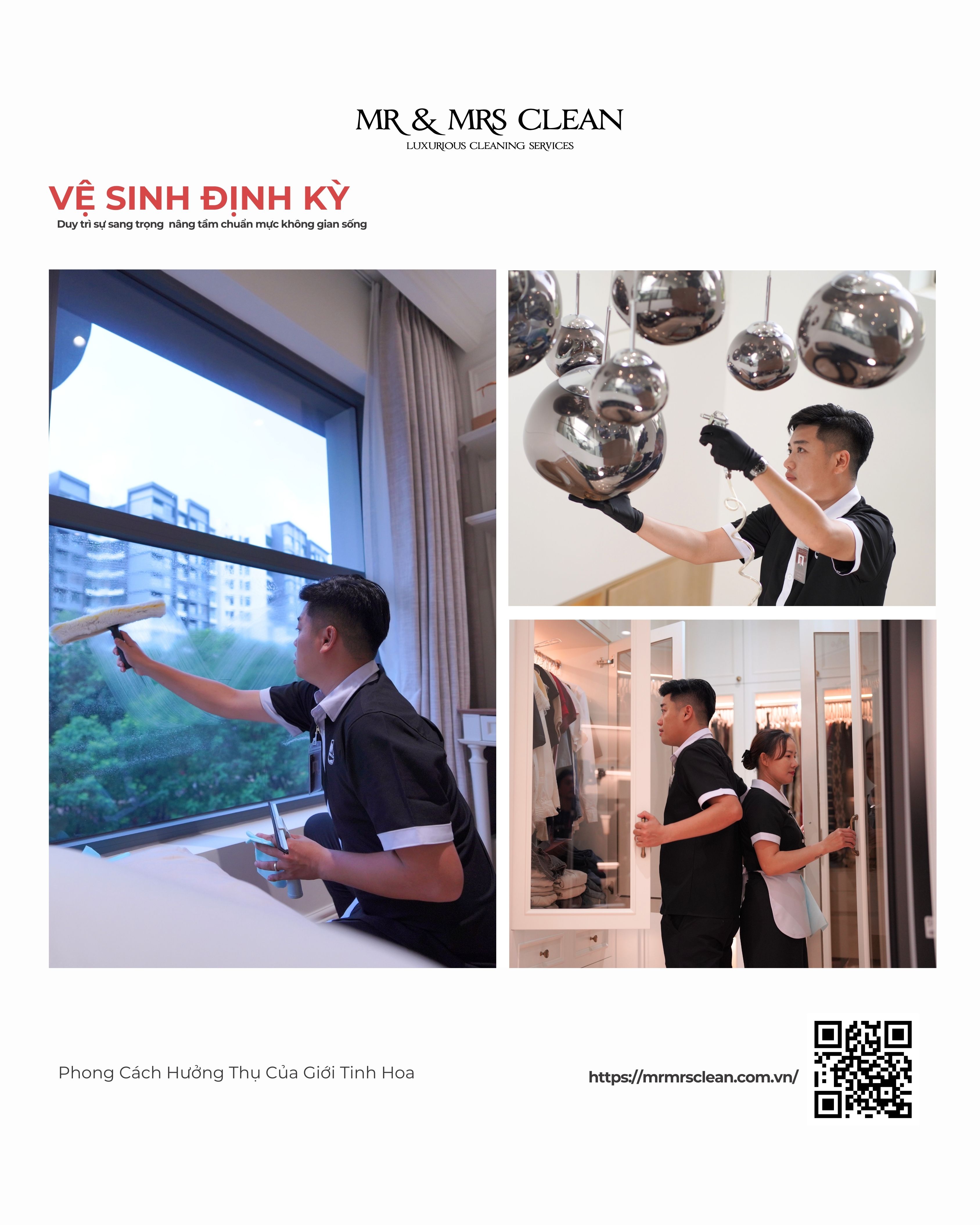 MR & MRS CLEAN mang đến dịch vụ Vệ sinh định kỳ, giải pháp tối ưu để duy trì chuẩn mực sạch sẽ, gọn gàng và vô trùng cho những ngôi nhà cao cấp. Dịch vụ không chỉ làm sạch toàn diện, sắp xếp khoa học và giữ nguyên tiêu chuẩn đã đạt được sau lần tổng vệ sinh chuyên sâu, mà còn đảm bảo sự an tâm tuyệt đối cho gia chủ.